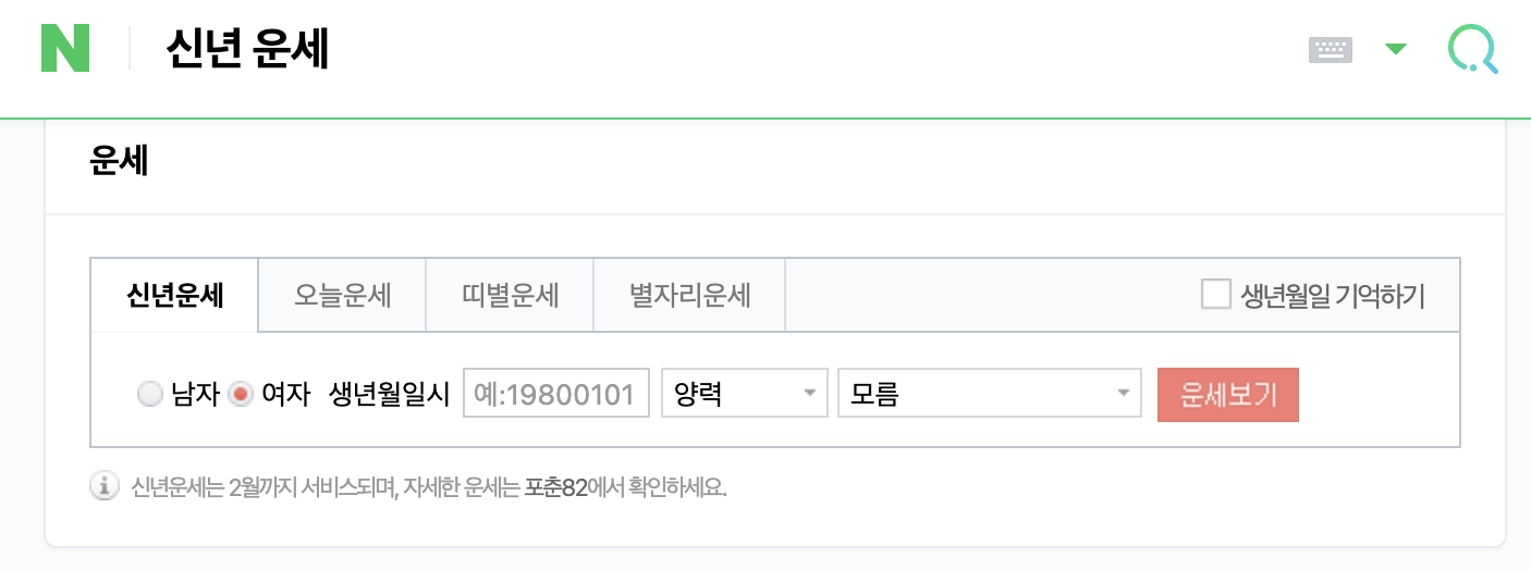 4. 네이버 운세 -네이버 검색창에 '운세'를 검색하세요.