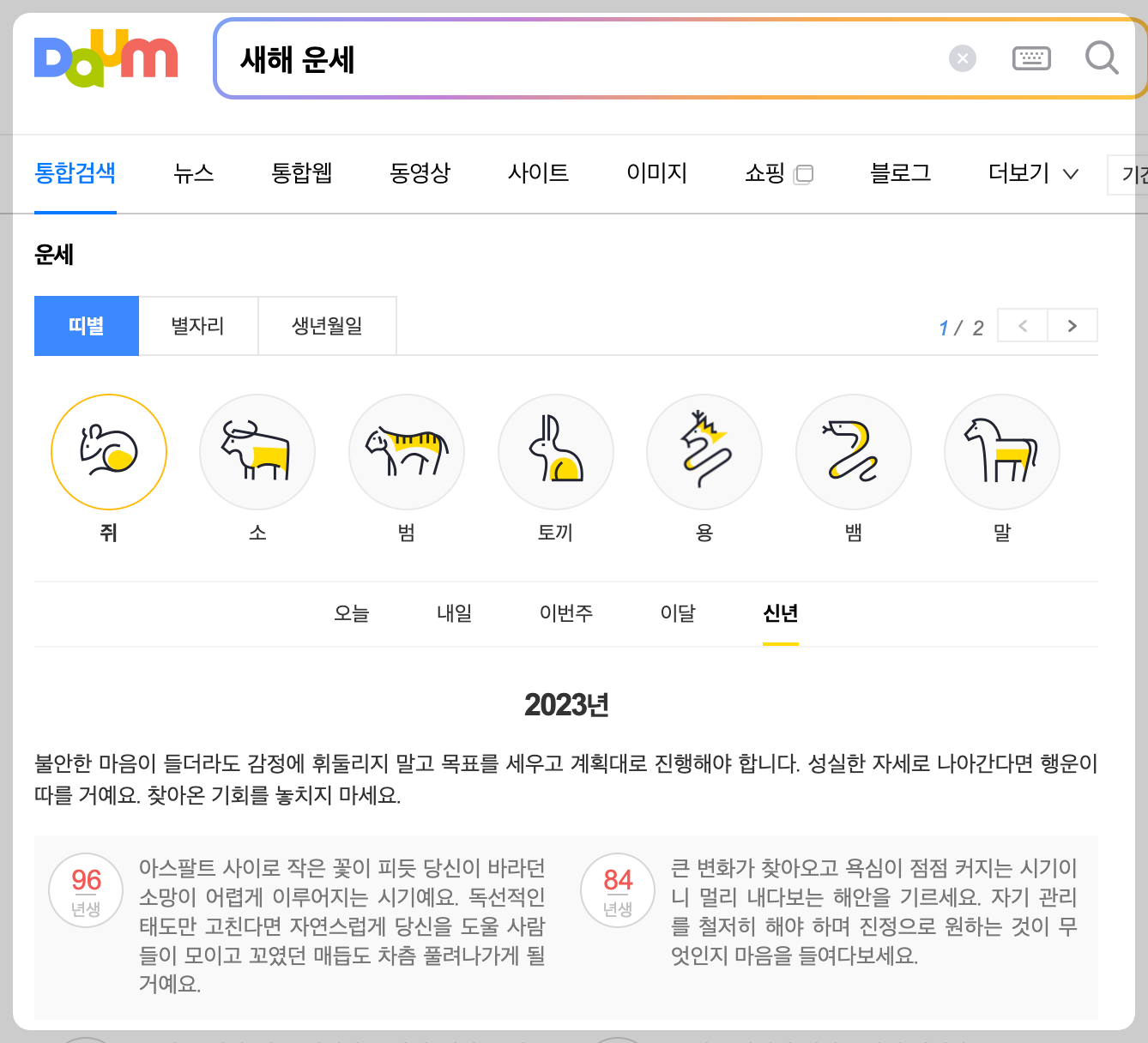 3. 다음 운세 - 다음 검색창에 '운세'를 검색하세요.